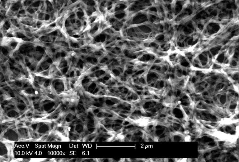 "The image is a phage templated network of contiguous cobalt oxide nanowires. The 3-D virus hydrogel platform is emerging as a versatile platform for a broad array of applications from biological scaffolding to inorganic electrode materials and visually represents the breadth of research in the Biomolecular Materials Laboratory."