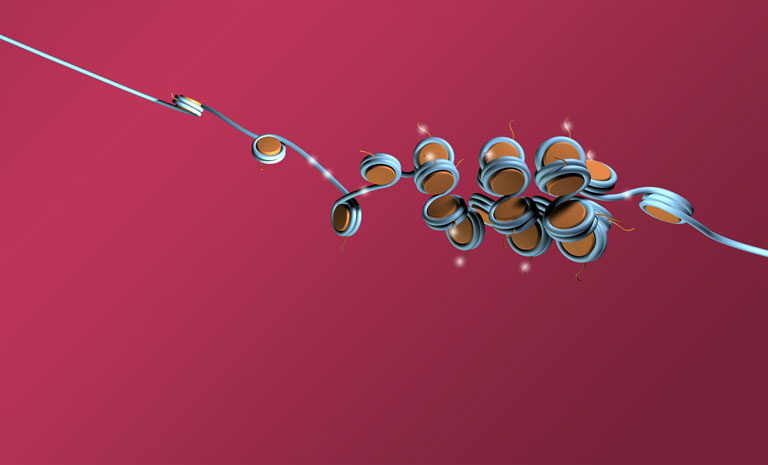 "Epigenomics is a new frontier for genome research. Literally meaning "on top of" the genome, the epigenome refers to the chemical tags that attach to DNA and the protein that organizes DNA folding. Researchers at the Broad Institute work to understand how the epigenetic modifications to chromatin can affect human health. These graphics visualize the process of mapping the epigenetic landscape."