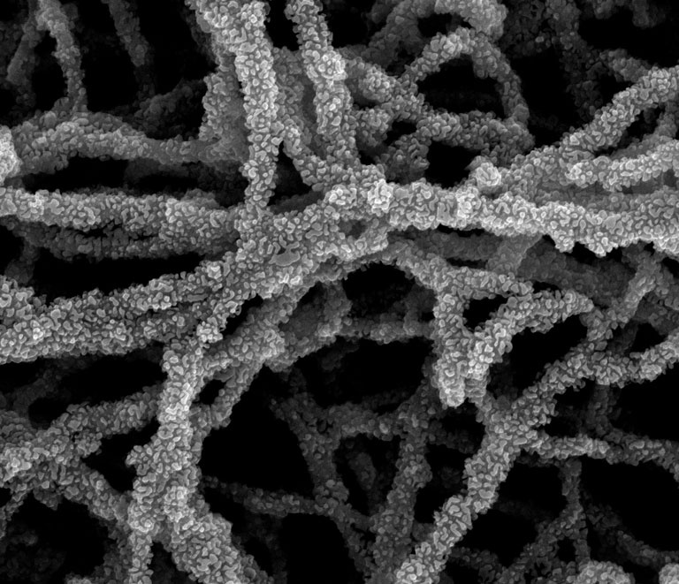 "These images demonstrate 3-dimensional nano-architectures synthesized from a bio-template. The synthesis process is designed to provide a broad class of materials for multiple device applications ranging from energy storage, to catalysis, to biosensors."