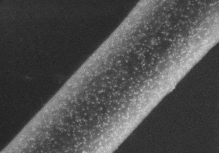 This image, submitted by Tzahi Cohen-Karni, shows surface morphology of a nanofiber made from silk worm silk.