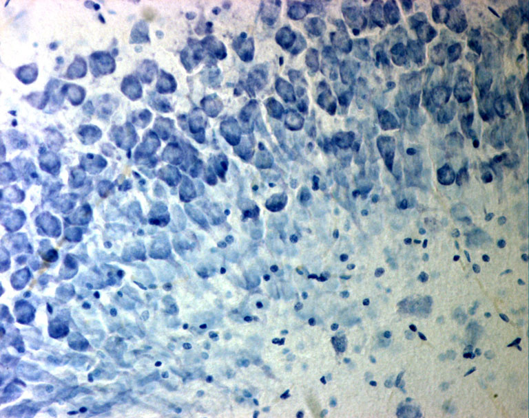 In our lab we use electrodes to register the activity of brain cells while animals perform memory tasks. Once we finish with the behavioral experiments, we take pictures like this one to find out if the electrodes were in the correct brain location."
