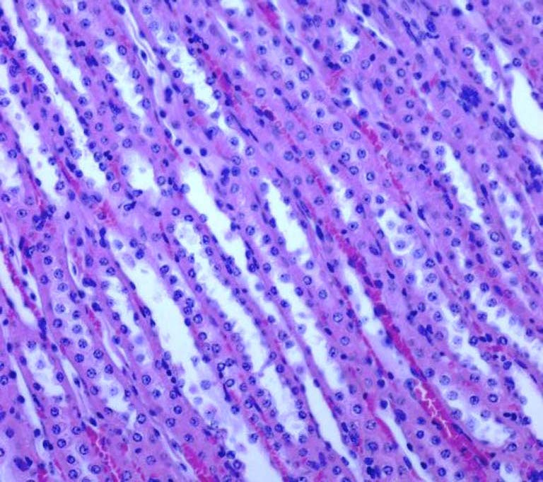 This image is one of many histology slides that were read by a certified pathologist to ensure that our carbon nanotubes were not causing inflammation in the animals. Showing the biocompatibility of the carbon nanotubes was an important step in the in vivo use of these sensors.