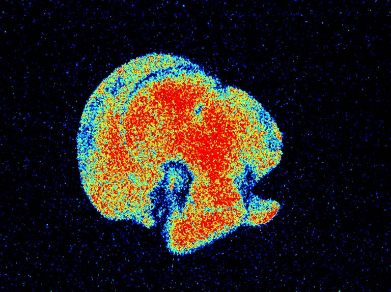 This is an image showing the presence and concentration of carbon nanotubes in a mouse’s liver. By taking this image, as well as many other images of livers at different time points after the injection, we were able to see how long it takes the carbon nanotubes to get to the liver and how long they stay in the tissue.