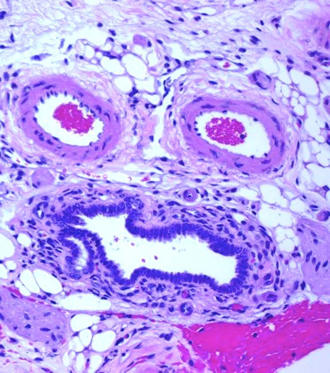This image is one of many histology slides that were read by a certified pathologist to ensure that our carbon nanotubes were not causing inflammation in the animals. Showing the biocompatibility of the carbon nanotubes was an important step in the in vivo use of these sensors.