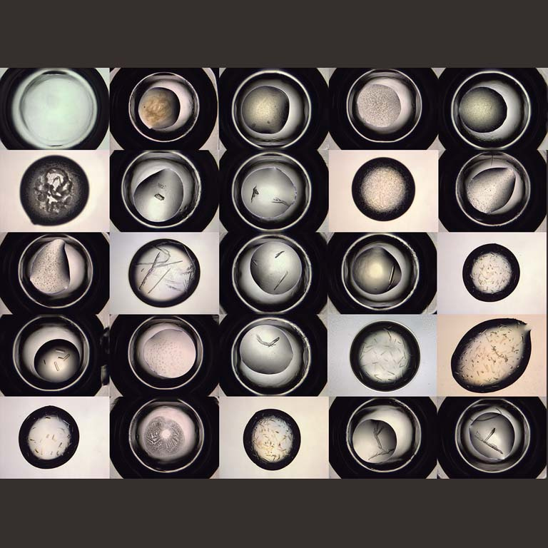 This image represents multiple attempts at crystallizing a protein. Solving the structure of a protein is a very important problem in biology as it allows us to understand its function. For me this image symbolizes my experience in scientific research. It takes a lot of patience, courage, determination and belief to see it through.