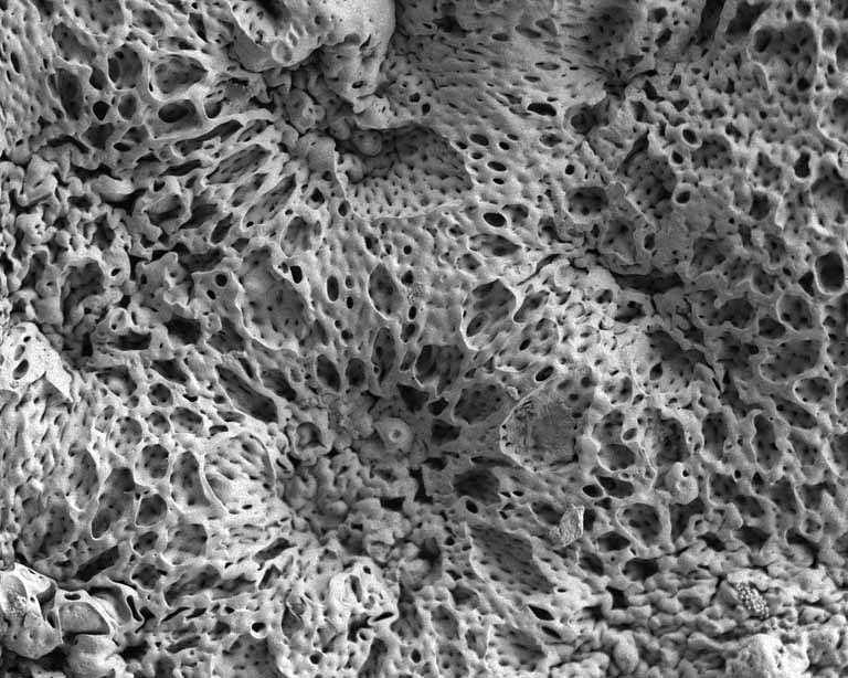 This image shows a biodegradable scaffold with a highly intricate porous surface that can be implanted in the body and used as a drug delivery depot to release multiple drugs in a controlled manner. Such an approach can be used for applications ranging from delivering chemotherapeutics to regenerative medicine to repair new tissue in the body.