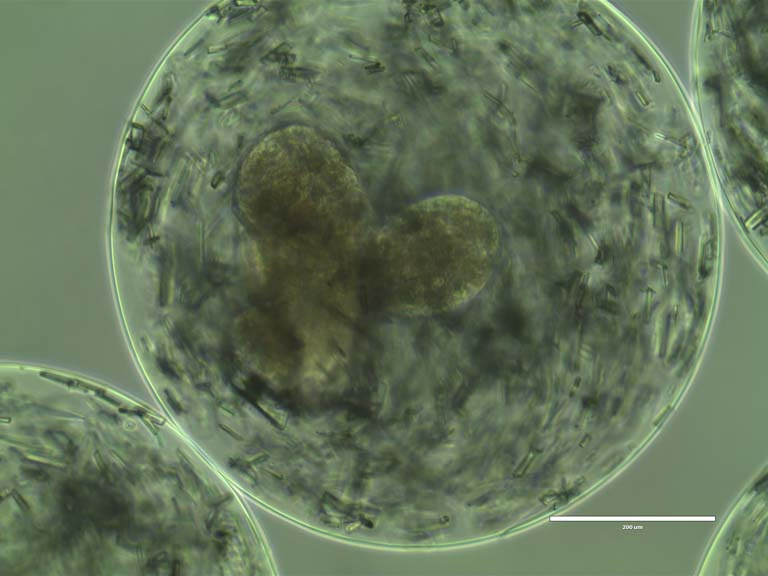 To combat these damaging responses for as long as possible, we have created crystal drug formulations to achieve long-term release, thereby eliminating the need for repeat (ie., weekly) visits to the doctor for injections. This brightfield image is focused on Type 1 Diabetes treatment. It highlights biomaterial devices with co-delivered glucose-responsive, insulin-secreting pancreatic beta-cells and crystalline drug. By preventing host rejection and elongating therapeutic success for as long as possible, patients can avoid daily finger prick glucose measurements and insulin injections, eliminating pain and inconvenience.