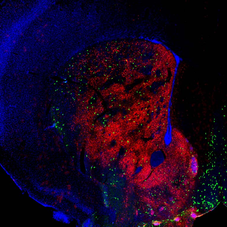 The striatum in the brain is known to be important in several aspects of cognition, including motor and action planning, decision making, motivation, reinforcement and reward. It is also found to be particularly vulnerable in various neurodegenerative diseases like Parkinson’s and Huntington’s disease. We are generating a working mouse model; one based on the striosome and matrix compartments in the striatum that will allow us to study the basal ganglia circuit in its healthy and disease states.