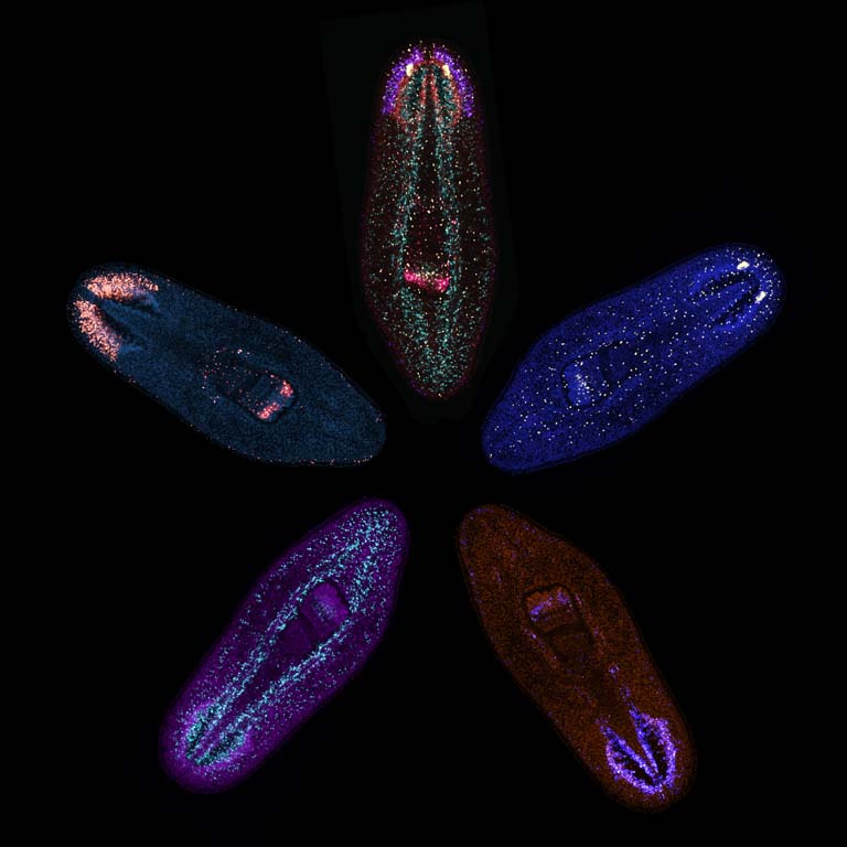We seek to understand how nervous systems might be regenerated, repaired and rewired. Planarian flatworms complete these tasks with great precision and rapidity after any injury, making them an excellent model for this problem. These images highlight the complexity of our challenge, and the beauty of this biological system.