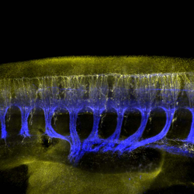 We are seeking to understand at a molecular level how neurons are able to correctly navigate long distances to form the required neuronal connections that form a functional nervous system. This is an image of neurons during development that are in the process of extending axons out towards their correct targets.