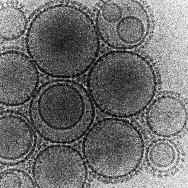 The HIV envelope spike protein complex is the only exposed target on the viral membrane for neutralizing antibodies. It is generally thought that presentation of envelope proteins in a highly multivalent form from the surface of a particle may contribute to the development of strong and durable neutralizing antibody responses in immunization. In a multi-lab, multi-disciplinary collaboration we have engineered lipid-based nanoparticles that display clinically-relevant envelope proteins (termed SOSIP). The oriented coupling of the proteins to the surface of the nanoparticles not only mimics the way the proteins are naturally displayed on the HIV virus, but also biases antibodies to be targeted to certain desirable sites on the proteins. This is a highly translatable nanoparticle platform that has the potential to be the basis for an eventual prophylactic HIV vaccine.