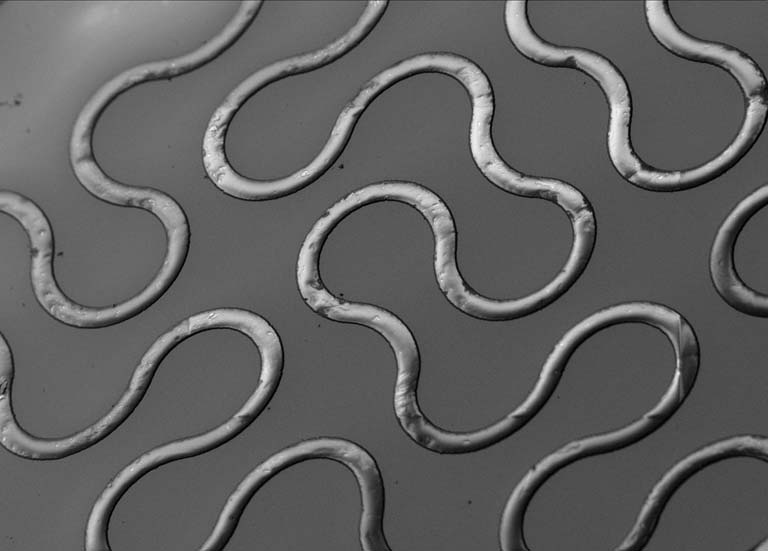 Restorative bionics has fascinated scientists and engineers since the Six Million Dollar Man.* However, the reality of such prosthetics has been hindered by the rigid structure of conventional electronics (think circuit boards). Two major approaches have been developed to allow electronics to conform to the elasticity of the soft muscle tissue within the human body. First, the individual electronic components of the conventional circuit board have been dismantled and distributed in arrays, which are then printed on flexible biocompatible polymers. Second, the conventional stiff linear metal circuits that control the flow of electrical energy have been reengineered into flexible fractal patterns (shown here). Such patterns allow bionics to maintain the use of high current loading, hard metal components while providing the flexibility to work with the human body.