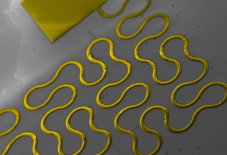 Restorative bionics has fascinated scientists and engineers since the Six Million Dollar Man.* However, the reality of such prosthetics has been hindered by the rigid structure of conventional electronics (think circuit boards). Two major approaches have been developed to allow electronics to conform to the elasticity of the soft muscle tissue within the human body. First, the individual electronic components of the conventional circuit board have been dismantled and distributed in arrays, which are then printed on flexible biocompatible polymers. Second, the conventional stiff linear metal circuits that control the flow of electrical energy have been reengineered into flexible fractal patterns (shown here). Such patterns allow bionics to maintain the use of high current loading, hard metal components while providing the flexibility to work with the human body.