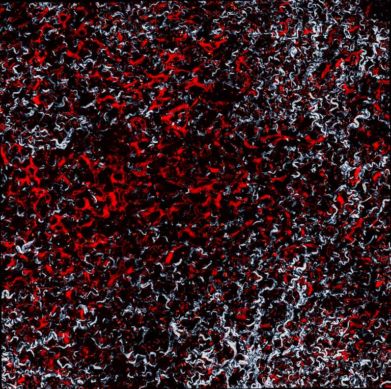 It is a highly zoomed-in picture of a mouse lung. The connective tissue (collagen) appears in white. The blood vessels are visible in red. They turned red after treatment with a new drug carrier (lipid nanoparticle) that can deliver drugs or gene therapy agents to the blood vessels of the lung. This technology can be used to deliver drugs to the lung to treat a variety of diseases including cancer.