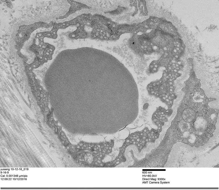 We are designing a nanomaterial-based drug delivery platform to target drugs/vaccines to lymph nodes for enhanced treatment efficacy and reduced side effects. These images showed that small gold nanoparticles (drug delivery vehicles) were found near collagen fibers in the dermis, but not near blood vessels, where most small molecule drugs were able to traverse.