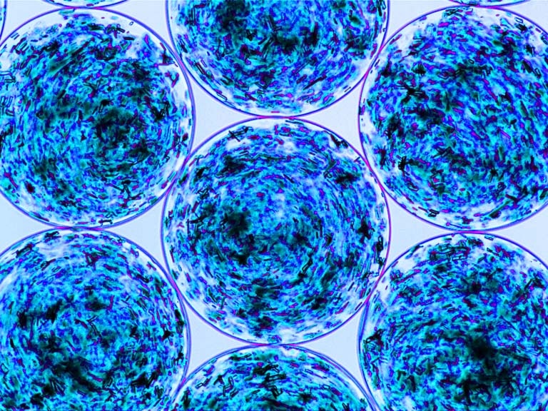 We have found that by having this special type of crystals co-encapsulated with insulin producing cells we could successfully able to prevent a rejection of these cell's devices and curing insulin-dependent-diabetes (T1D) for few years without the need of insulin injection or other medications. This technology can be applied for various types of cells encapsulation, medical devices and therapies. These images were taken to study how the encapsulated crystals are fixed inside the spheres (cell's device), their distribution and to follow their stability at different condition.