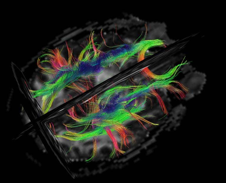 The image shows the fiber tracking result reconstructed from the cingulum bundle brain area that is found to be related to inattention symptoms in ADHD.
