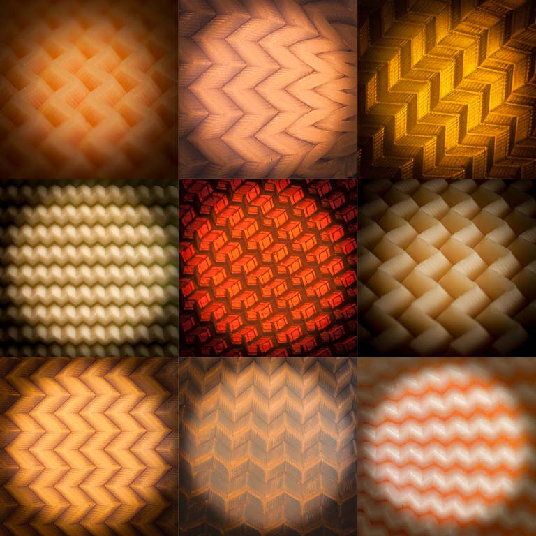 The Cima lab is developing implantable drug delivery devices made of soft and stretchy biomaterials like the ones shown here that will be placed inside a cancer patient’s abdomen to release chemotherapy and treat tumor metastases. To allow implantation of these devices through tiny tools in a minimally invasive surgery, they are designed drawing inspiration from Japanese origami tessellations to fold down into millimeter-thick shapes and be opened once inside the body. One of these folds, shown here, is the Miura fold. The Miura fold allows expansion of the object along two dimensions and is widely used around us, from everyday objects like maps to the panels of satellites in space. This grid was compiled from Miura device concept prototypes made from various versions of our biomaterial and in different sizes. The features are millimeter-sized. The prototypes were cast in molds that were 3D- printed or machined in-house.