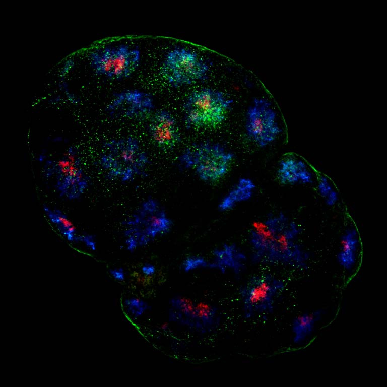 The HIV envelope protein complex is the only exposed target on the virus for binding by neutralizing antibodies, which is the first step in successfully blocking HIV infection. Here we show the first demonstration of B cell follicle (blue) targeting of HIV envelope proteins (red) within mouse draining lymph nodes upon immunization with a fully defined synthetic protein nanoparticle platform. The trafficking profile of this vaccine platform allows for sustained antigen exposure within active germinal centers (green), which are the sites of B cell maturation and potent antibody production required for long-term protection against the virus. This is a highly translatable nanoparticle platform that has the potential to be the basis for an eventual prophylactic HIV vaccine.
