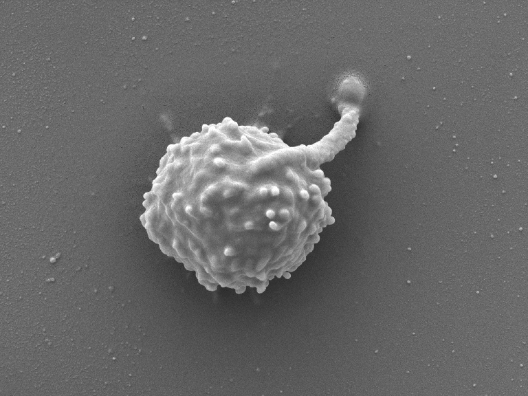 These images show malaria sporozoites interacting with a human natural killer (NK) cells directly, as well as NK cells in various states of activation in response to the parasite. These interactions are dependent on antibodies that recognize the sporozoite and promote NK cell activation and function.