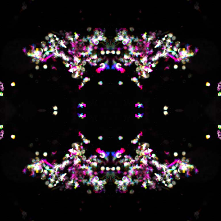 The image depicts very specialized of immune cells, called dendritic cells, as they move inside the tumor of a living mouse. These images were taken as a time series over 30 minutes. Time has been encoded as colors in an overlay. Immobile parts of the dendritic cells are white while cell movements are shown as different colors, depending on their exact timing.