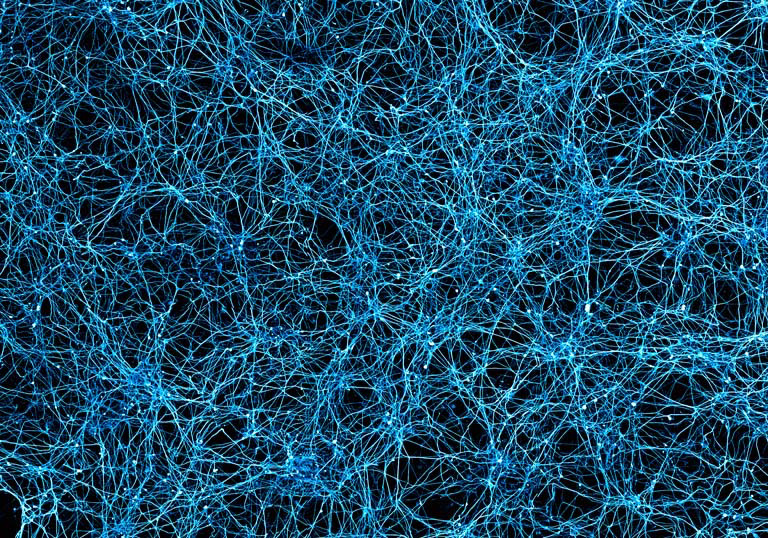 Our knowledge of the human brain has been hindered by the difficulty in extracting and culturing human neurons in the lab. Reprogramming human skin cells into pluripotent stem cells, known as induced pluripotent stem cells (iPSCs), now allows for the generation of human neurons in a dish for studies of neurological disorders in a patient-specific manner. Here, skin cells from a human adult were reprogrammed into iPSCs and subsequently differentiated into neurons, adopting a complex architecture of axonal and dendritic branches that allows nerve impulses to travel from one cell to the next. Our goal is to employ iPSC technology to build a functional human neural circuit in a dish to model and study the biological underpinnings of network defects found in Alzheimer’s disease.