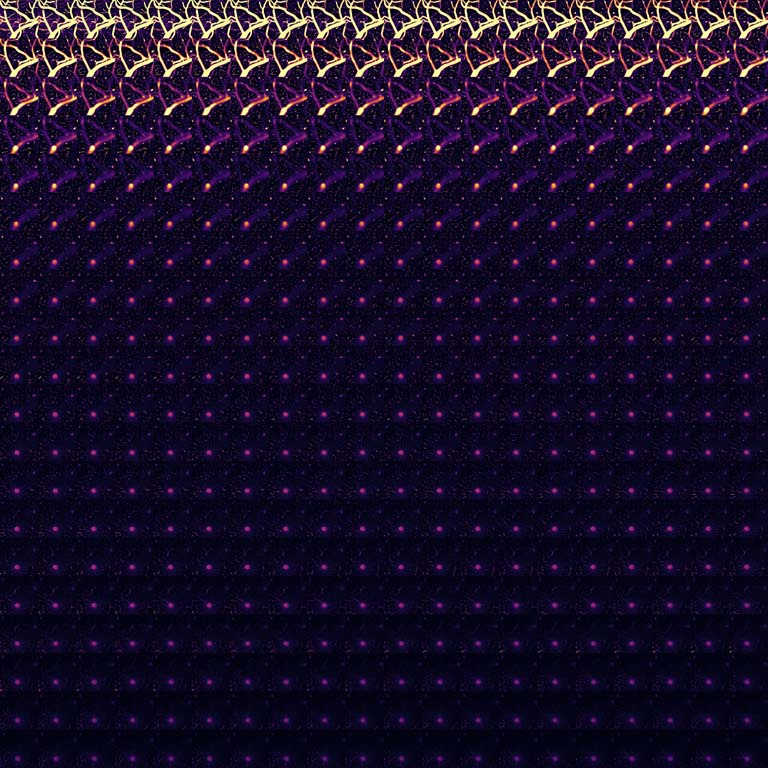 As you look from left to right and top to bottom, each frame corresponds to 1 micron imaged deeper into the cortex. You can trace minute capillaries (the smaller vessels) as well as large arterioles plunging deep into the brain (bright circles perpendicular to the imaging plane). If you look carefully at some of the capillaries, you can see tiny shadows—these correspond to individual red blood cells and immune cells which do not take up the dye and therefore appear as dark patches against the bright plasma. During the time lag of each optical plane adjustment, you can even see cells move along the capillary. In some capillaries, the blood cells do not move, indicating that this is a “plugged” capillary, thought to occur because the cells adhere to the inflamed capillary wall.