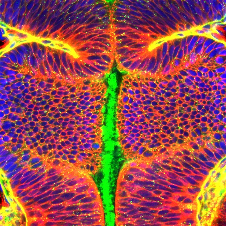 This is an image of early developing zebrafish brain. We are comparing normal to mutant brains. Mutant brains showed membrane architecture changes. These experiments help us understand what the developing brain should look like and how our mutant brains differ.