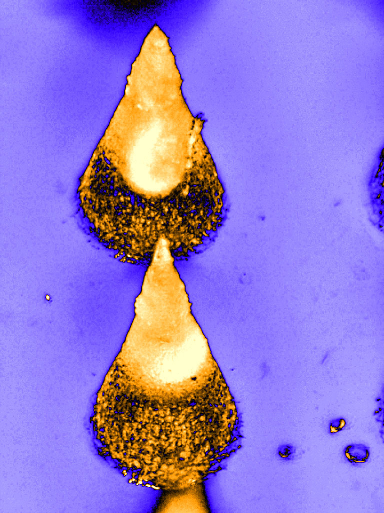 The microneedle structure must be strong enough to penetrate the skin, but also having a porous enough structure that will allow cells to migrate inside. In the images it can be seen how the tip of the needles has a lower porosity and stronger mechanical properties while the lower regions display a much higher porosity.