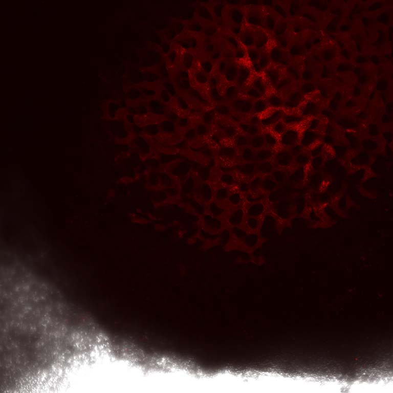 Here we see images of gastrointestinal surfaces (Stomach and Small Intestine), where the cell surface structure has been modified to allow for improved drug uptake. The surface modification has here been made visible by a fluorescent dye, allowing us to study which parts of the GI tract have successfully been converted.