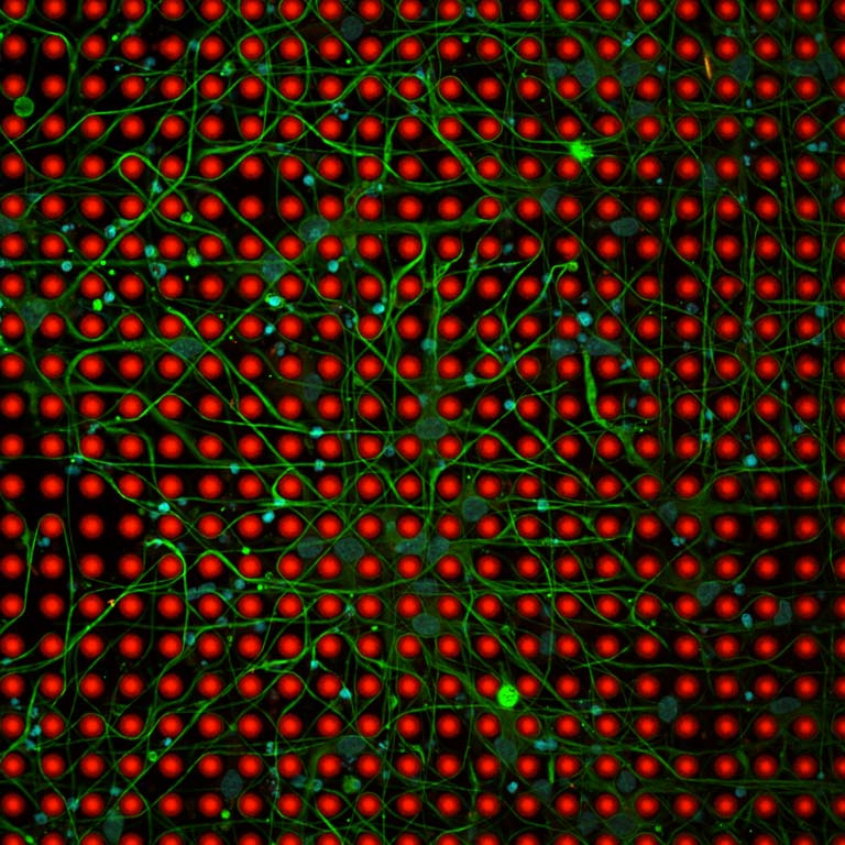 These images show glial cells (human and rodent oligodendrocytes, astrocytes and microglia) interacting with engineered synthetic 3D-printed Artificial Axons, mimicking biological axons of neurons. Artificial Axons, the first fully controllable synthetic axon mimics, were developed at the Van Vliet lab by A. Jagielska and others to study vital process of myelination and the interaction of glial cells with axons, in the tunable in vitro settings. Artificial Axons are currently used for drug discovery of compounds to promote myelin repair in Multiple Sclerosis and to study myelin disorders in Alzheimer’s disease.