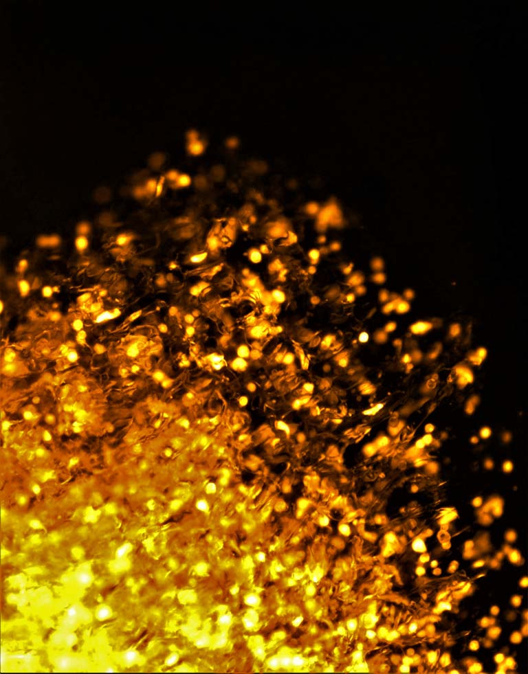 This image displays an implantable living pharmacy wherein implanted cells absorb nutrients from the patient’s body and in turn secrete therapeutics such as insulin for diabetes. The implant comprises cells (glowing dots) dispersed within the pores of a novel spongey material. The sponge is specially engineered to rapidly percolate oxygen throughout the entire structure, like how air ducts deliver air to different rooms in a building. This enhanced oxygen supply throughout the implant can support a higher density of healthy cells by reducing competition for limited nutrients, effectively reducing the surgical footprint.
