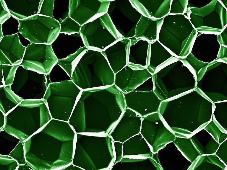 These are anti-static foams used to detect mechanical pressure. We want to understand the microstructure of the foam to understand how it reflects mechanical pressure into resistance change. The porous structure verifies the hypothesis that the reduction of resistance upon a mechanical pressure applied is due to the creation of more contacting points in the material.