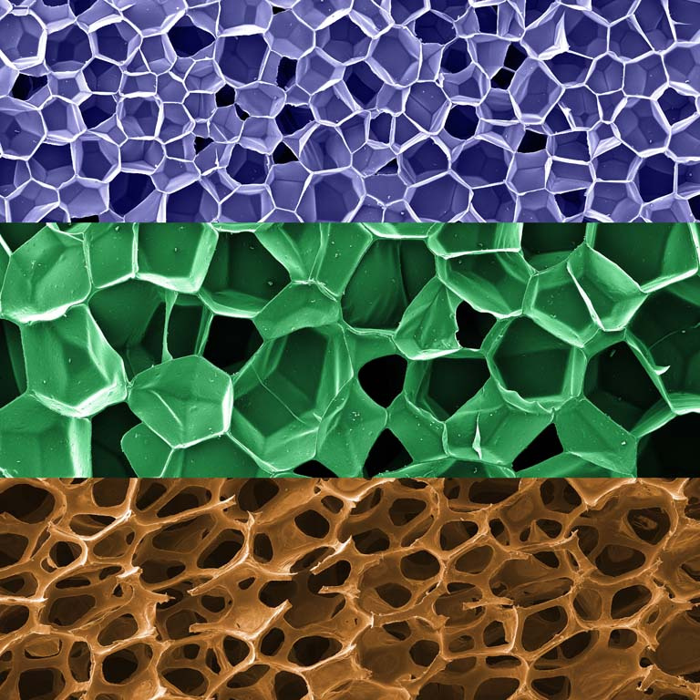 These are anti-static foams used to detect mechanical pressure. We want to understand the microstructure of the foam to understand how it reflects mechanical pressure into resistance change. The porous structure verifies the hypothesis that the reduction of resistance upon a mechanical pressure applied is due to the creation of more contacting points in the material.