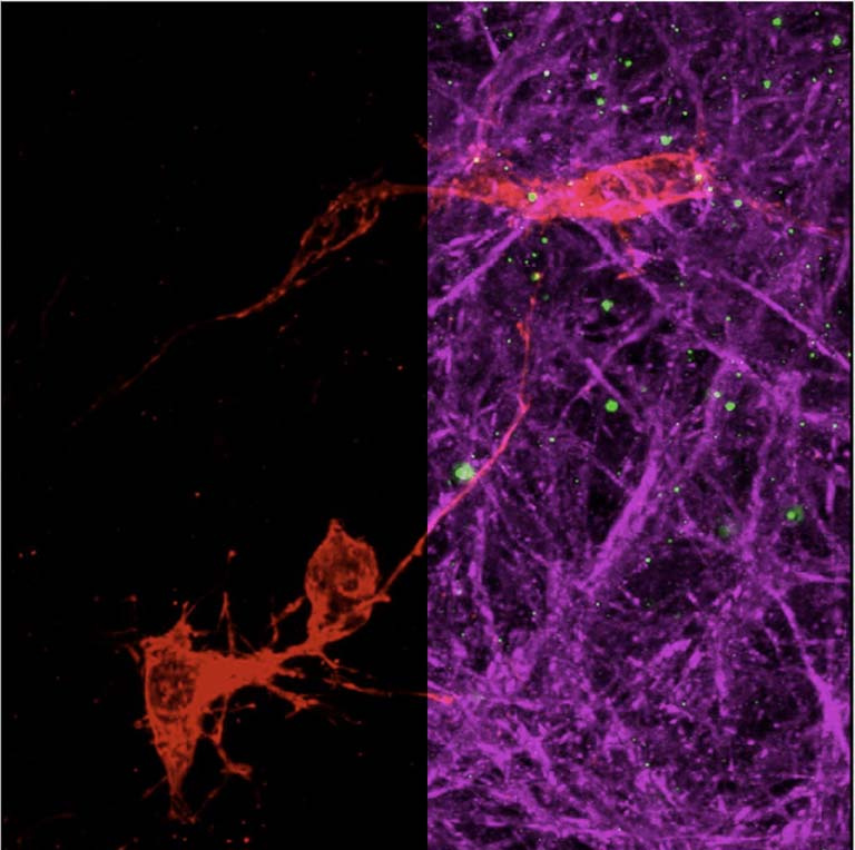 We were interested to see if sensory neurons, which respond to pain, touch and temperature, can be infected by SARS-CoV2. The sensory neurons formed these beautiful ganglia which are physiological and similar to how they arrange in our bodies. The infected neuron culture shows how the virus can infect connected cells.