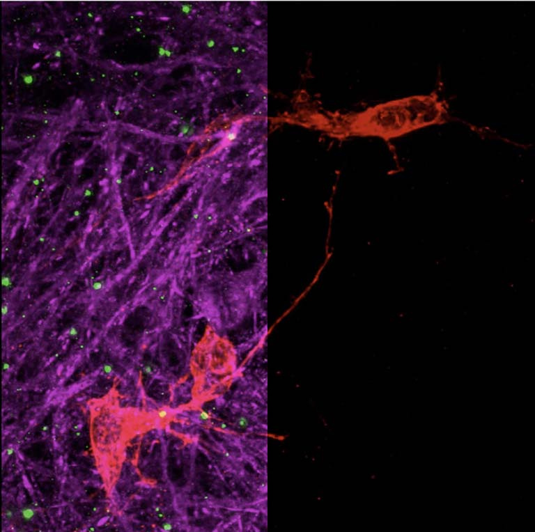We were interested to see if sensory neurons, which respond to pain, touch and temperature, can be infected by SARS-CoV2. The sensory neurons formed these beautiful ganglia which are physiological and similar to how they arrange in our bodies. The infected neuron culture shows how the virus can infect connected cells.
