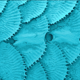 We took this image to inspect the relative sharpness and adhesion of the needles after various printing parameters, including scan rate and print mode, were adjusted. Our goal was to find a combination of parameters which yielded extremely sharp needles while maintaining a feasible print time to enable rapid prototyping and larger arrays of microneedles.