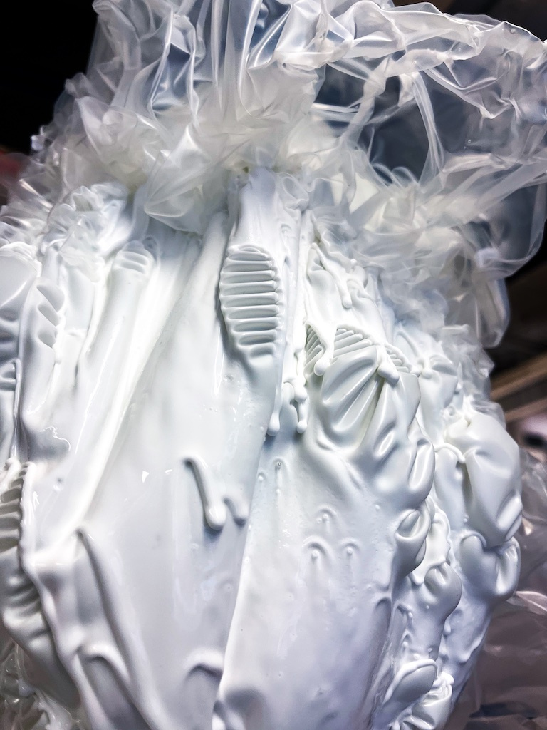 How do corals grow and assemble from individual, microscopic units into eye-catching geometries? How do we visualize this? We accidentally realized that the polymer system of Elmer’s glue, acrylic paint, and latex balloons was a very realistic and just as captivating model of their growth. These polymers can entangle each other, swell, and stretch based on their environment. In these images, we document our accidental finding of a way to capture the macroscopic effects of microscopic tugs-of-war between these polymers. This project began as a way to study how coral formations form their distinctive patterns, like the brain coral, and we were pleasantly surprised to create a tug-of-war environment that mimicked this species exactly, teaching us a lot! We were able to generate environments and chemical makeups that gave rise to the formation of corals that were brain-like (Platygyra), mushroom-like (Fungildae), fan-like (Gorgonia), and more.