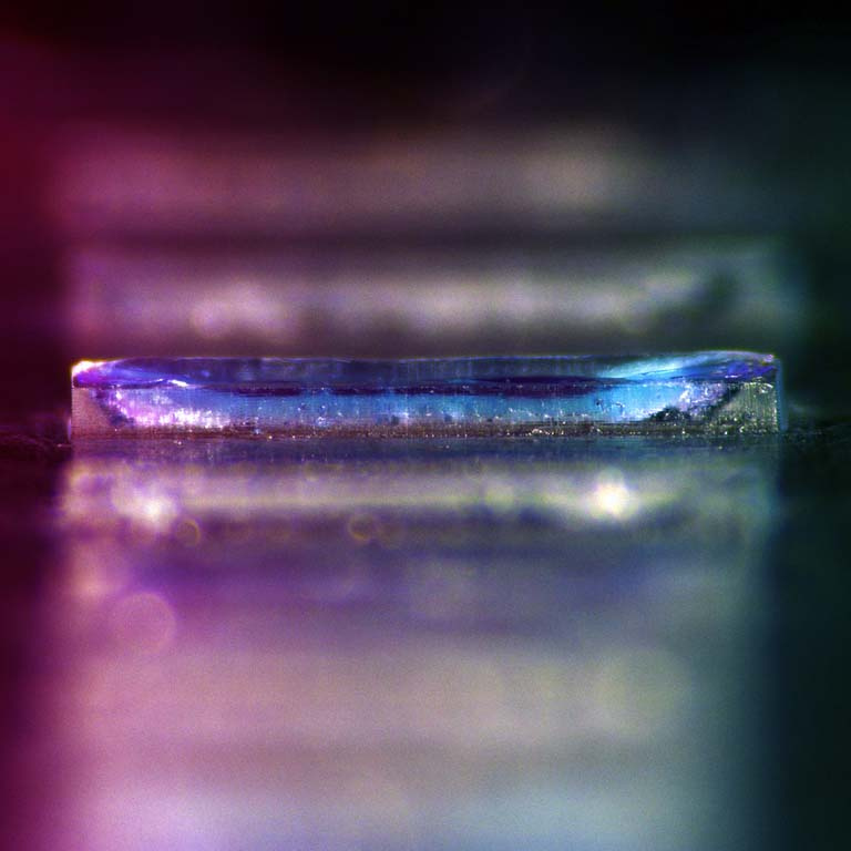 The images highlight an elongated microdevice fabricated by a biodegradable, FDA-approved polymer. This micro-level container is filled with a layer of coating material (pink) and a layer of mRNA vaccine stabilized by polymer mixtures (blue). The images show us how the coating material is able to stabilize and protect the cargo containing mRNA vaccine.