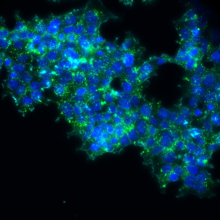 The goal of our research is to create a technology that allows for the measurement of a cell’s transcriptional state while keeping the cell alive. This image was some of the early evidence in the project that our viral machinery could be expressed within human cells and assemble into virus-like particles.
