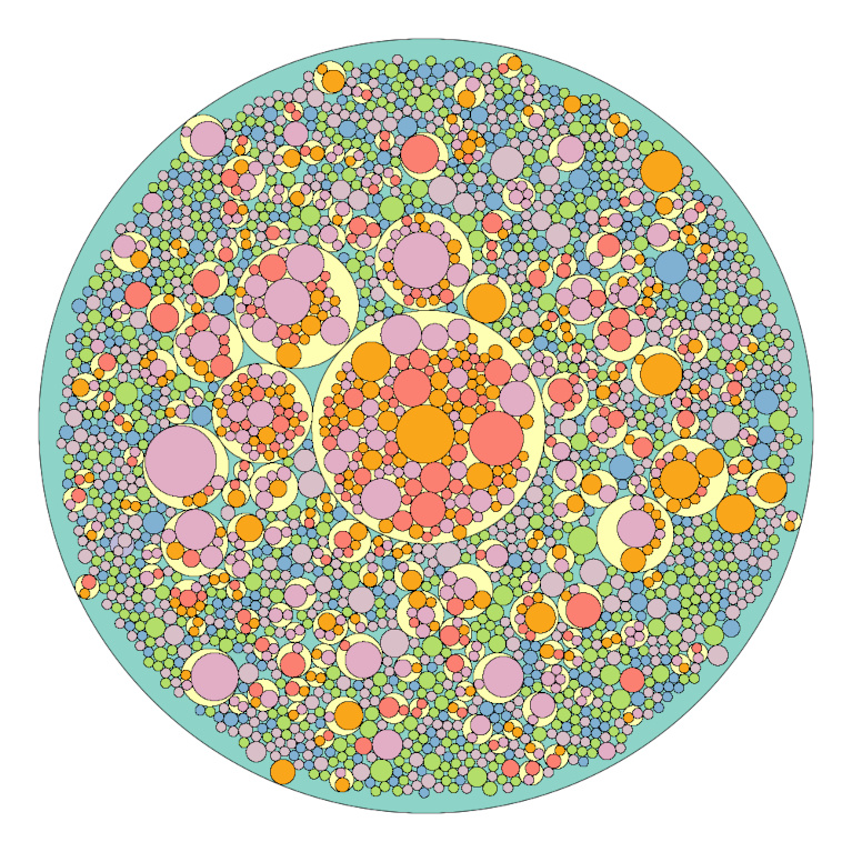 This figure shows how our body is generating diverse antibody pools after receiving a vaccine shot. Each small circle is a “family”, or clone, of B cells that are making the antibodies. The sizes of each circle show how many family members there are, or the number of B cells in the clone. Using the single-cell BCR sequencing technique and computational analysis pipelines we developed in our lab, we can now study the vaccine and adaptive immune response at an unprecedented analytical resolution, where this image is one example that we can “see” exactly what antibodies our B cells are making, how many B cells are making them, and how are the antibodies similar or different using different vaccine formulations.