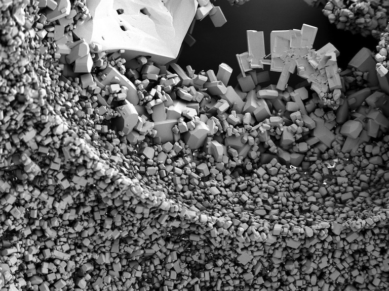This image was obtained using scanning electron microscopy (SEM). To prevent electrical charging, the sample was first sputtered with a nanoscale layer of gold. The image gives detailed information about an implant’s structure on multiple length-scales, which also helps us to learn more about the self-assembly mechanism.