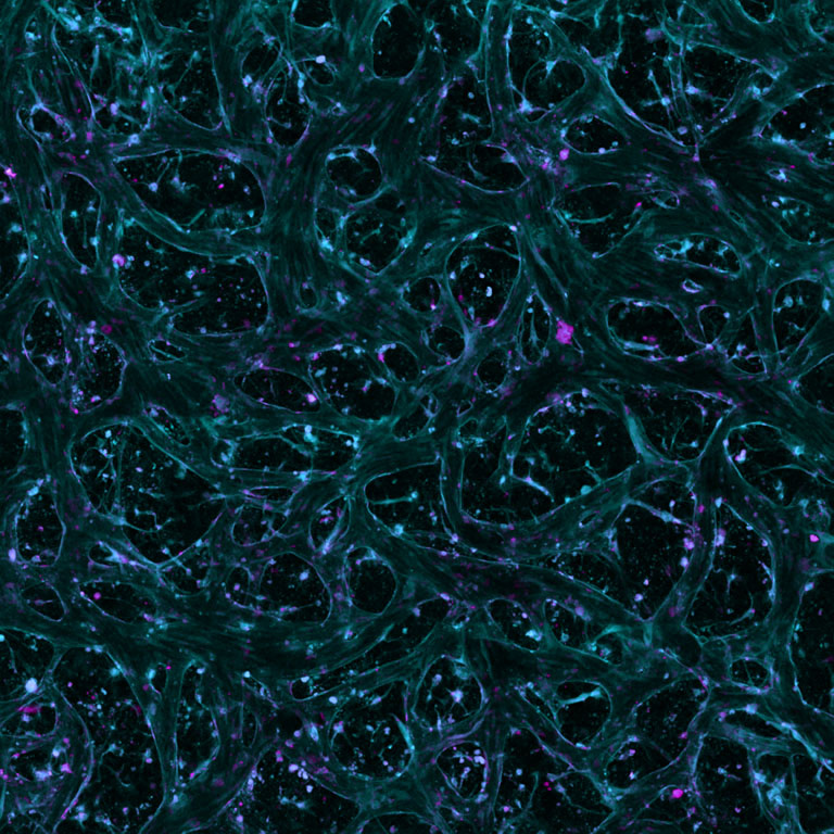 This image presents a live, three-dimensional view of a human blood–brain barrier model, an intricate cellular interface that shields the brain while managing the exchange of nutrients and therapeutics. This image is part of our project “Self-localized ultrafast pencil beam for volumetric multiphoton imaging”, where we discovered a novel self-organizing light phenomenon that generates an ultrafast “pencil beam” for high-speed, high-resolution 3D imaging.